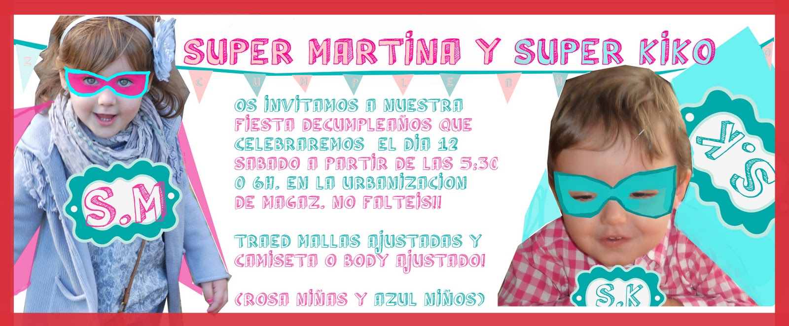 Les estamos montando una fiesta basada en hテゥroes vintage, o lo que es lo mismo, como nos hemos disfrazado en casa de super hテゥroes toda la vida, unas mallas y una camiseta muy justa, algo que servテュa de capa, unos calzoncillos encima de la ropa y a volar por toda la casa con el puテアo arriba a modo de superman. Tengo muchisimas ganas de ver a todos los peques disfrazados, nos esta ayudando con toda la idea y la tematica la empresa de organizacion de fiestas y decoracion, PISTACHO, de maria caテアal, del blog escarabajos, bichos y mariposas! y sus ideas las esta plasmando Carolina (hadas y cuscus) se esta currando toda la temテ。tica de la fiesta,. esta haciendo los disfraces, y luego toda la decoraciテウn del local, otra amiga nos va a dejar un castillo de aire, que ha sido todo un テゥxito en el cumple de su peque Alejandro el pasado fin de semana, llevaremos dos toboganes pequeテアos y seguro que no pararan de correr y saltar!!!