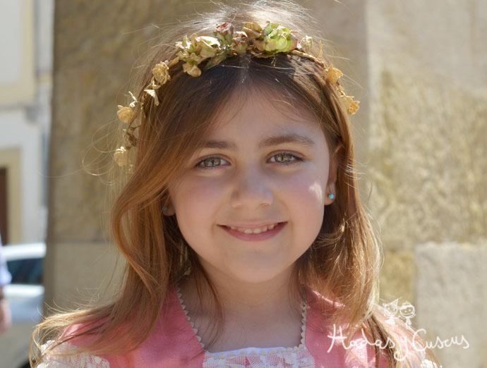En este caso, la pequeña cuscus, se puso la coronita para la comunión de su primo Jose! y de verdad que todo el mundo le encantó! y lo mejor, que ella estuvo comidisima porque se adapta a la perfección, y se mantuvo en su sitio todo el dia!!! es muy ligera y no le molestó en ningún momento!