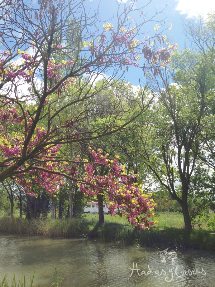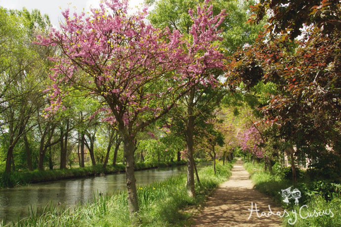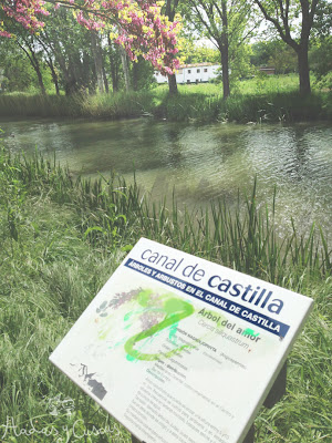 El canal de Castilla, lleno de familias de patos, flores, vegetación y los árboles del amor, que parece que se abrazan y se dan la mano...unos con otros!