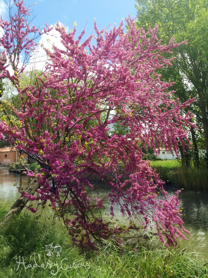 Mi marido hizo el trayecto del canal de Castilla en bicicleta con unos amigos y volvió enamorao...y las flores del árbol,preciosas.