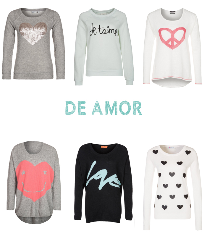 Otra manera es mandar mensajes de amor con tu ropa! Parece que en la tienda online Zalando nos han leído el pensamiento , ya que he visto que tienen una enorme selección de prendas con corazones, loves, y temáticas muy propias para san valentin! y ademas tienen una sección especial de San Valentin, con una selección de artículos de regalo para ellas y también para ellos! podéis verlo aquí