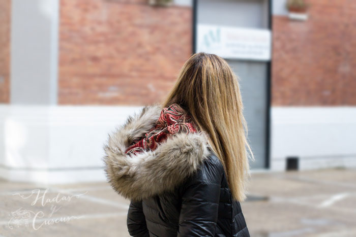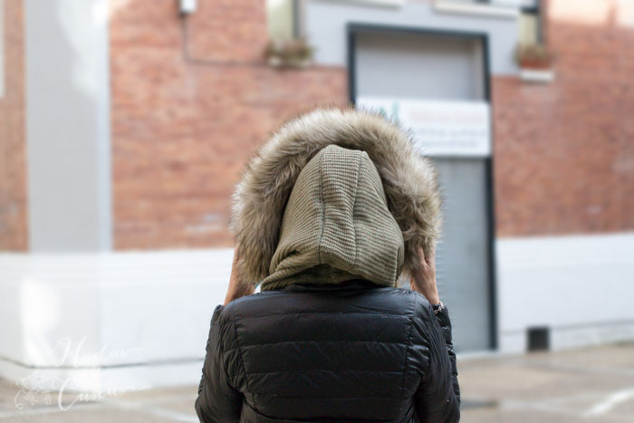 Los cuellos y bufandas, me encanta, y si tienen capucha ni te cuento! La idea de hacer un cuello con capucha, surgió cuando estuvimos en Londres el año pasado y Eva se compró un cuello súper chulo en una tienda de Carnaby street, así que teniendo el cuello, yo solo he sacado el patrón y me he hecho el mío diy.