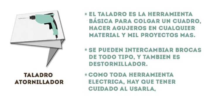 - Es una de las herramientas básicas, que no debería faltar en todo aquel que se inicie en esto del bricolaje! si quieres colgar un cuadro lo necesitarás y hacer un agujero en la pared, puede dar algo de miedo, pero para todo hay una primera vez! ¿verdad?