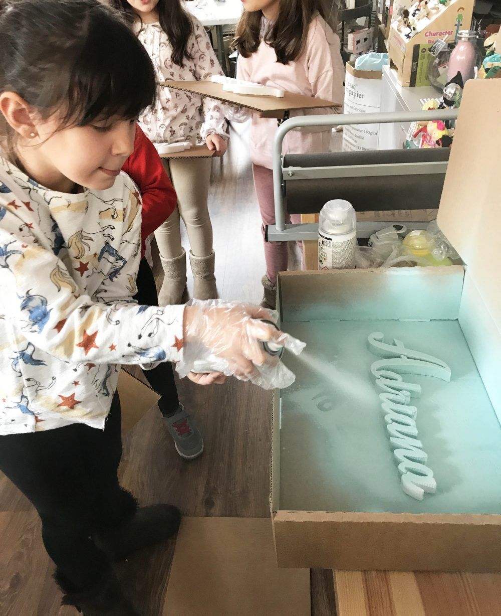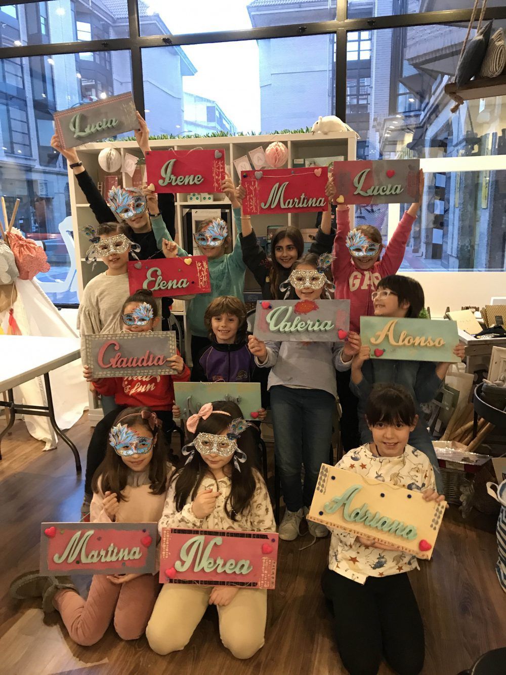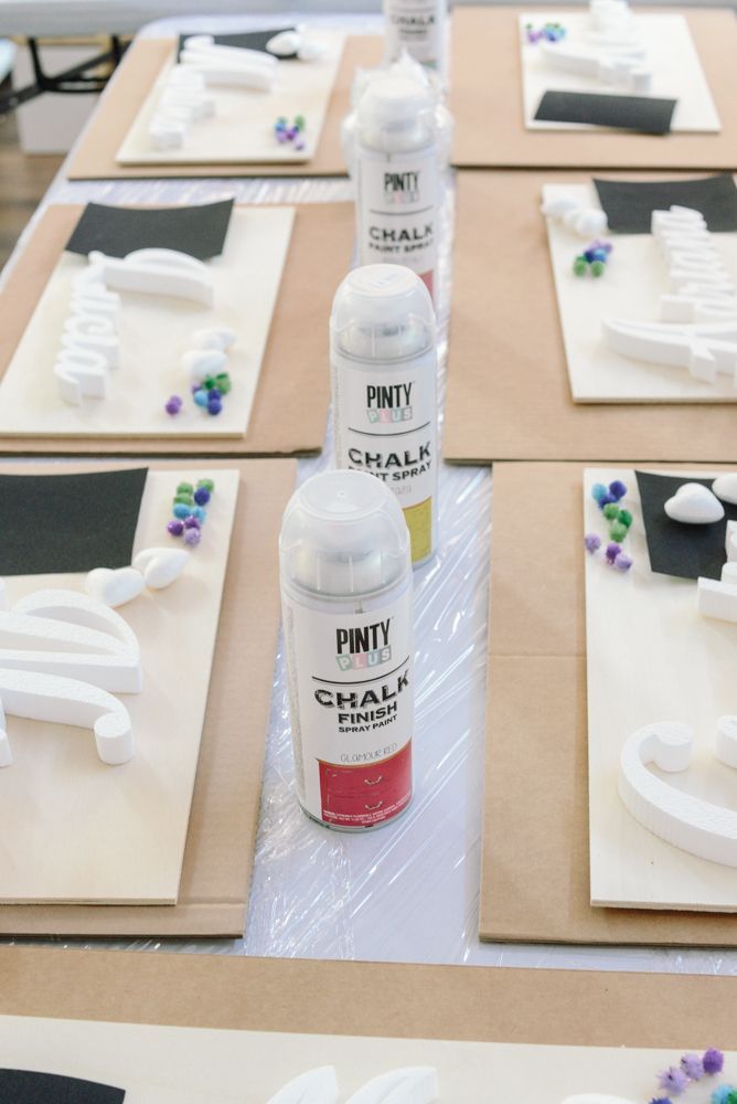 Patricia es amor en estado puro, y además de tener un gusto exquisito en la selección de productos, es de estas personas de eterna sonrisa y con mil ganas de hacer cosas chulas! siempre está super abierta a cualquier proyecto bonito y creativo que se le presente, así que cuando le comenté si le apetecía hacer en su local un taller de cumple con los sprays que ella vende en la tienda, de Chalk paint de Pinty plus, sin dudarlo dijo que si! aun sabiendo el caos que puede suponer hacer algo asi con 12 niños, de entre 8 y 10 años!