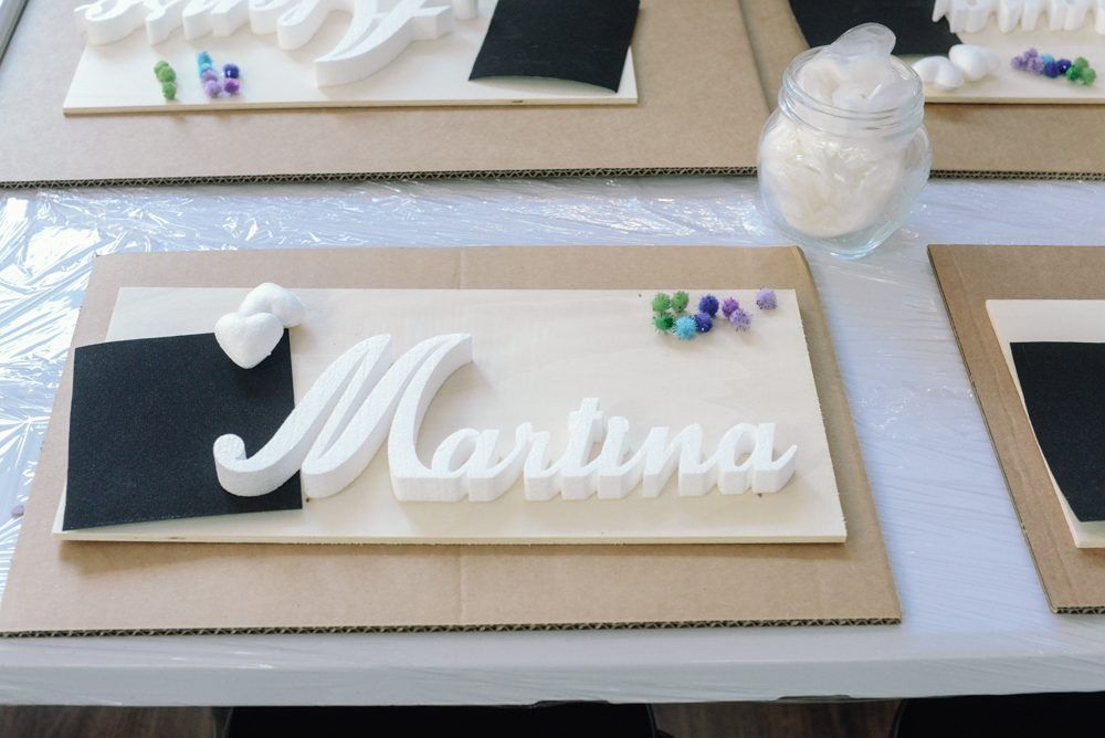 La idea de hacer el taller, es que cada uno de los niños hiciese un cartel para su habitación, personalizado con su nombre, en porexpan, y Patricia se encargó de todo, , yo le dí los nombres y las medidas y ella hizo la magia.