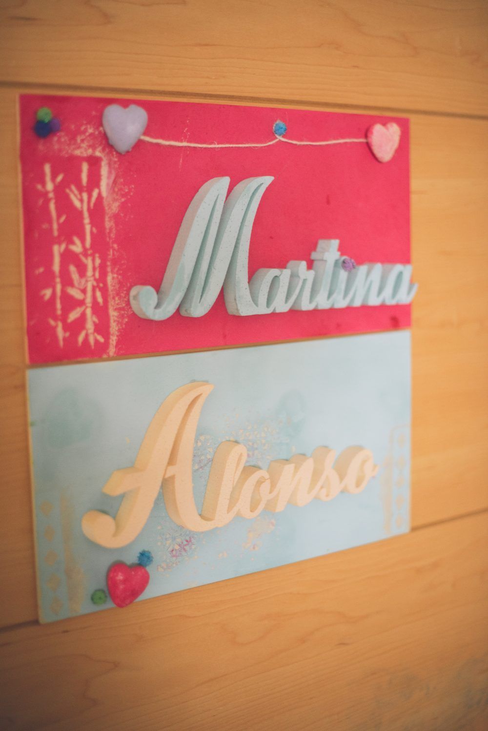 Las caras de felicidad de los niños, al encontrarse en cada puesto de la mesa sus nombres, no tenia precio! los sprays de chalkpaint en diferentes colores, unas maderas y demás accesorios para poder decorar y pegar todo en sus carteles hicieron el resto.