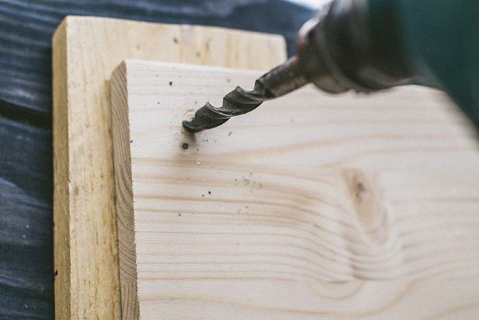 Con la broca especial para madera y del tamaño adecuado para que pueda pasar bien nuestra soga, hacemos los agujeros.