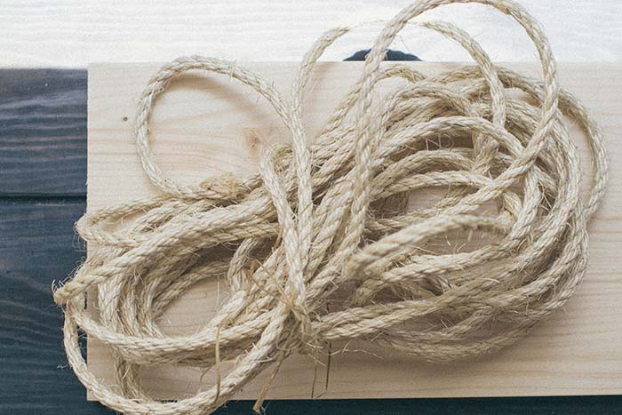 Los materiales que necesitaremos para hacerlos son pocos y fáciles de encontrar! un tablero de madera, cortado en las medidas que queramos hacer las baldas de la estantería, un poco de cuerda tipo soga, y unas alcayatas.