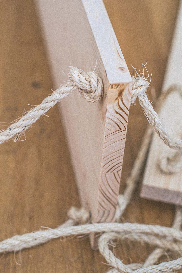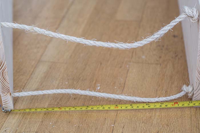vamos pasando la soga, teniendo en cuenta las medidas, y hacemos nudos para ir rematando