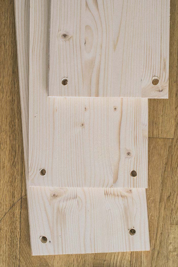 Con las baldas ya cortadas, primero de todo medimos para ver donde vamos a hacer los agujeros con el taladro, para luego insertar la cuerda por ellos.