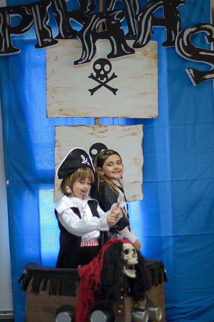 photocall de un barco pirata, hecho de cartones, piñata barco, y figuras de porexpan, con calaveras, y barcos, hacían que los niños se sintieran en una auténtica isla pirata!