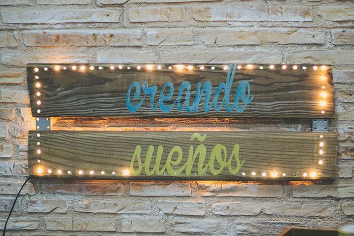 Para esta colaboración, teníamos claro que queríamos hacer un cartel de madera luminoso, y que luego pudiéramos tener en nuestro taller para que nos recordara un mensaje tan bonito y positivo, como el que es, tener nuestro propio espacio para ir creando sueños!