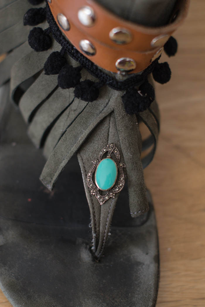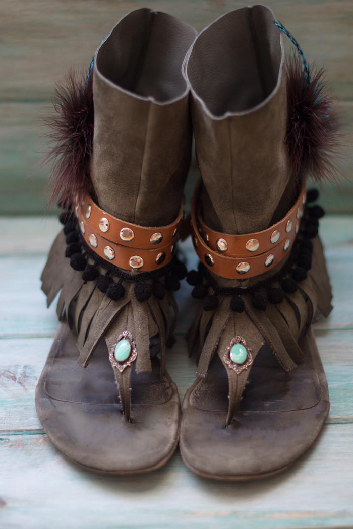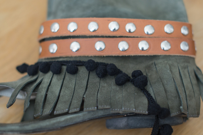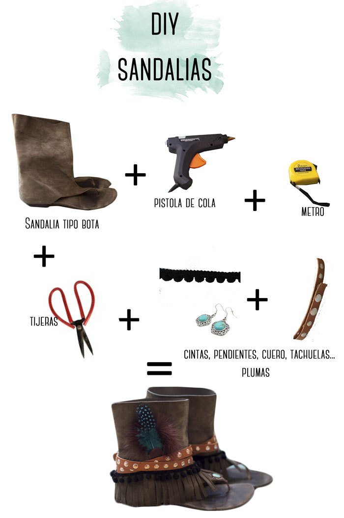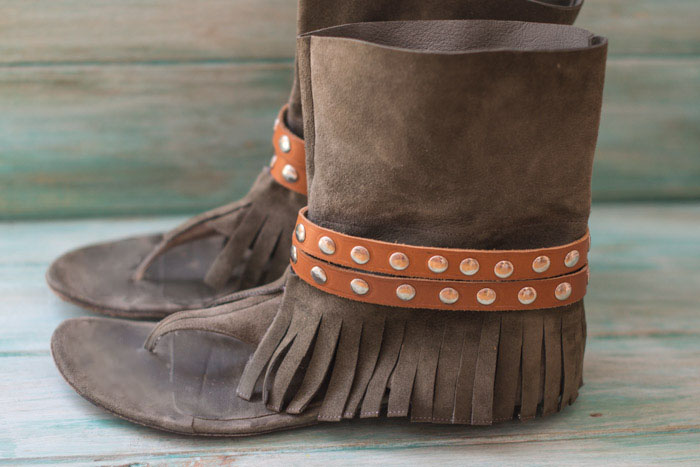 Aquí la idea es hacer de esta sandalia bota, una sandalia mas baja de caña, y con un estilo boho chic, que se lleva tanto!